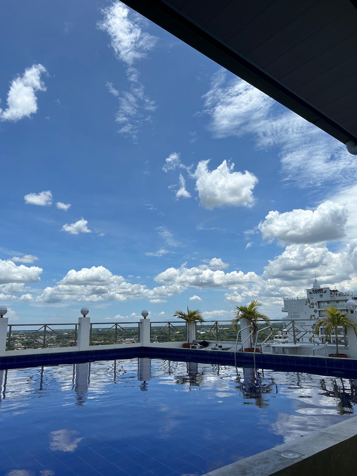 This condo is located in Kandi Palace. A 10th Floor Studio Unit which allows you watch the sun rise from your balcony. It is located right in the Center of Angeles City's entertainment district. Just a 5 minutes walk away from Fields Avenue and Walking Street’s bars and attractions *FREE Daily Maid Service*included as well as internet & NETFLIX. This is the newest Kandi property out of all of there buildings. There is a Rooftop pool located in this building as well as access to 2 gyms .