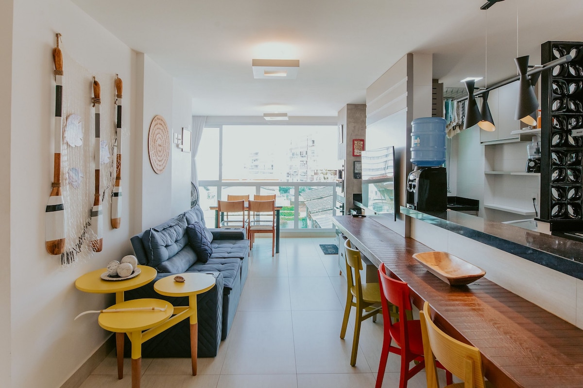 Experimente uma estadia sofisticada na Enseada Azul, a passos das praias Bacutia e Peracanga. Apto elegante com churrasqueira interna, cervejeira, ar-condicionado nos 2 quartos, cozinha completa, Wi-Fi, roupas de cama e banho inclusas e piscina na cobertura. Um refúgio exclusivo para viver momentos inesquecíveis em Guarapari.