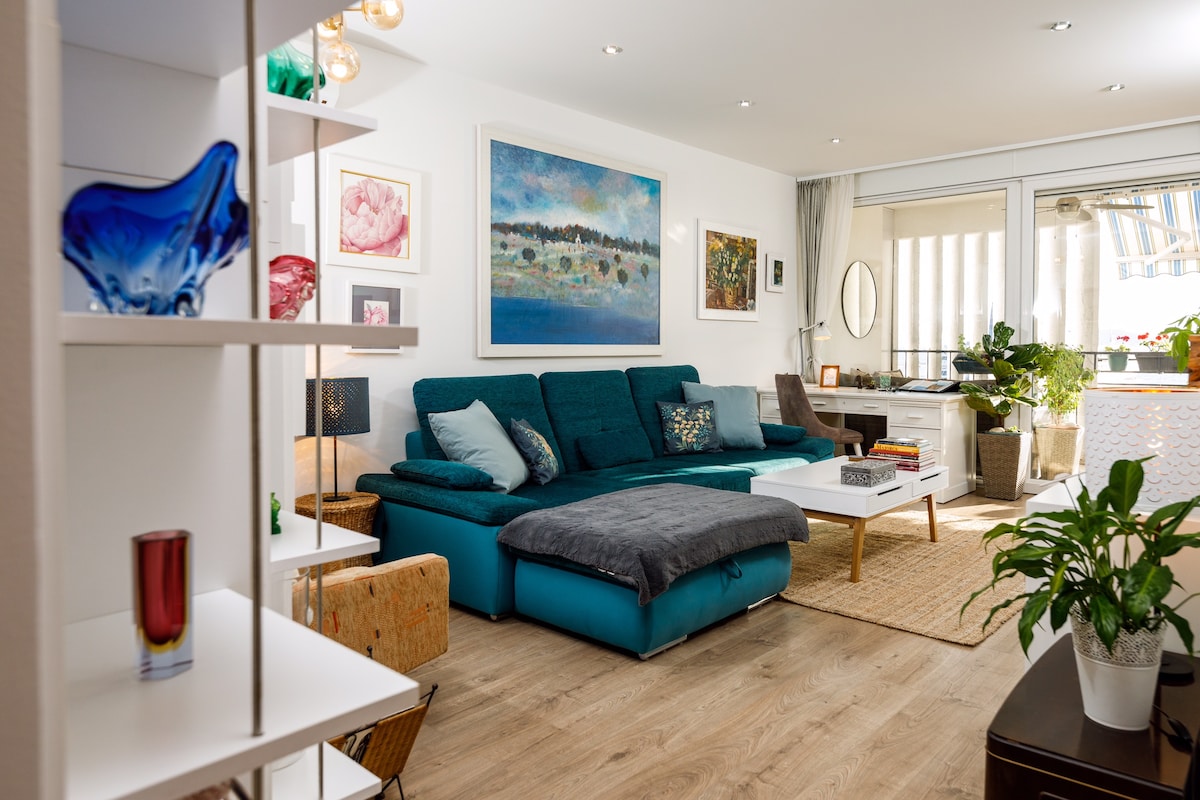 位于市中心的豪华公寓,带花园和免费公共停车场