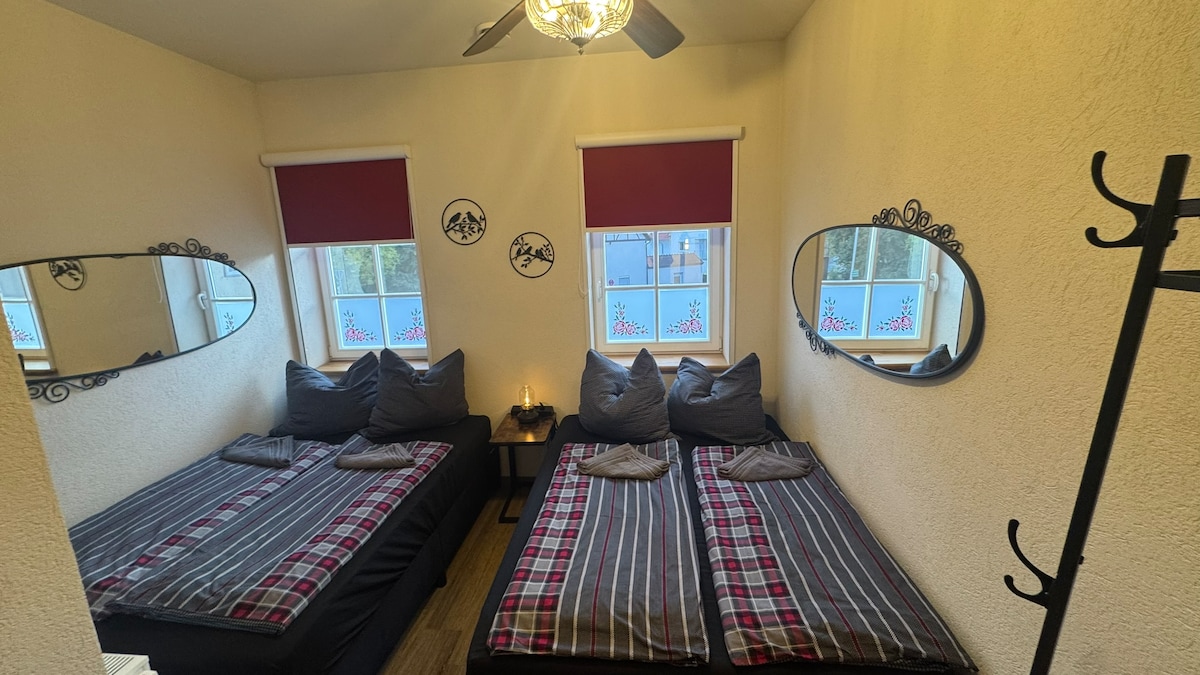Klassisches Einzelzimmer – Privat & Komfortabel Unser gemütliches Einzelzimmer eignet sich ideal für Alleinreisende oder Geschäftsreisende. Es verfügt über ein bequemes Bett, ein eigenes Bad sowie eine funktionale Einrichtung mit Schreibtisch und Kleiderschrank. Ruhig, sauber und einfach zum Wohlfühlen. Kostenloses WLAN Flachbild-TV Heizung Frische Handtücher & Pflegeprodukte