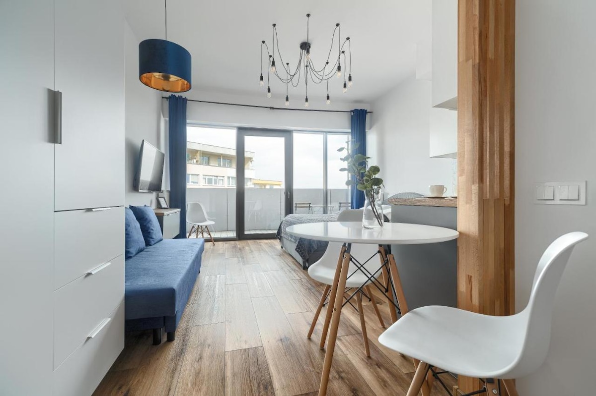 Apartament na 16. piętrze w samym centrum Szczecina to idealne miejsce na relaks. Pokój wyposażony jest w łóżko king size, telewizor i kominek elektryczny, który tworzy przytulny klimat. Aneks kuchenny posiada piekarnik i płytę indukcyjną, a łazienka – nowoczesny prysznic. Goście mogą korzystać z tarasu widokowego na 27. piętrze oraz strefy wellness z basenem, jacuzzi i dwiema saunami, zapewniającymi pełen komfort i odprężenie.