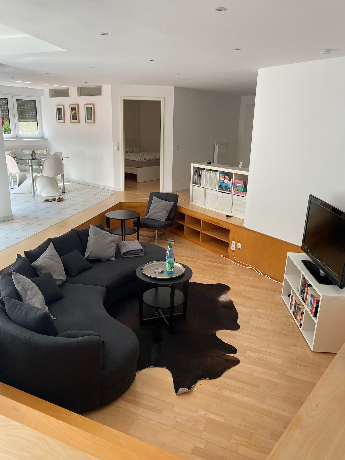 Willkommen in deinem Zuhause auf Zeit! Unsere helle Dachgeschosswohnung mit großem Balkon verbindet Komfort und modernes Design. Ob Urlaub oder Geschäftsreise, hier kannst du dich sofort wohlfühlen. Die moderne Küche lädt zum gemeinsamen Kochen ein, der Balkon zu Kaffee, Sonne und Entspannung. Am Tischkicker wartet Spaß für Groß und Klein. Offene Räume, viel Licht und eine gemütliche Atmosphäre machen die Wohnung besonders. Es ist Platz für bis zu vier Erwachsene und ein Kleinkind.