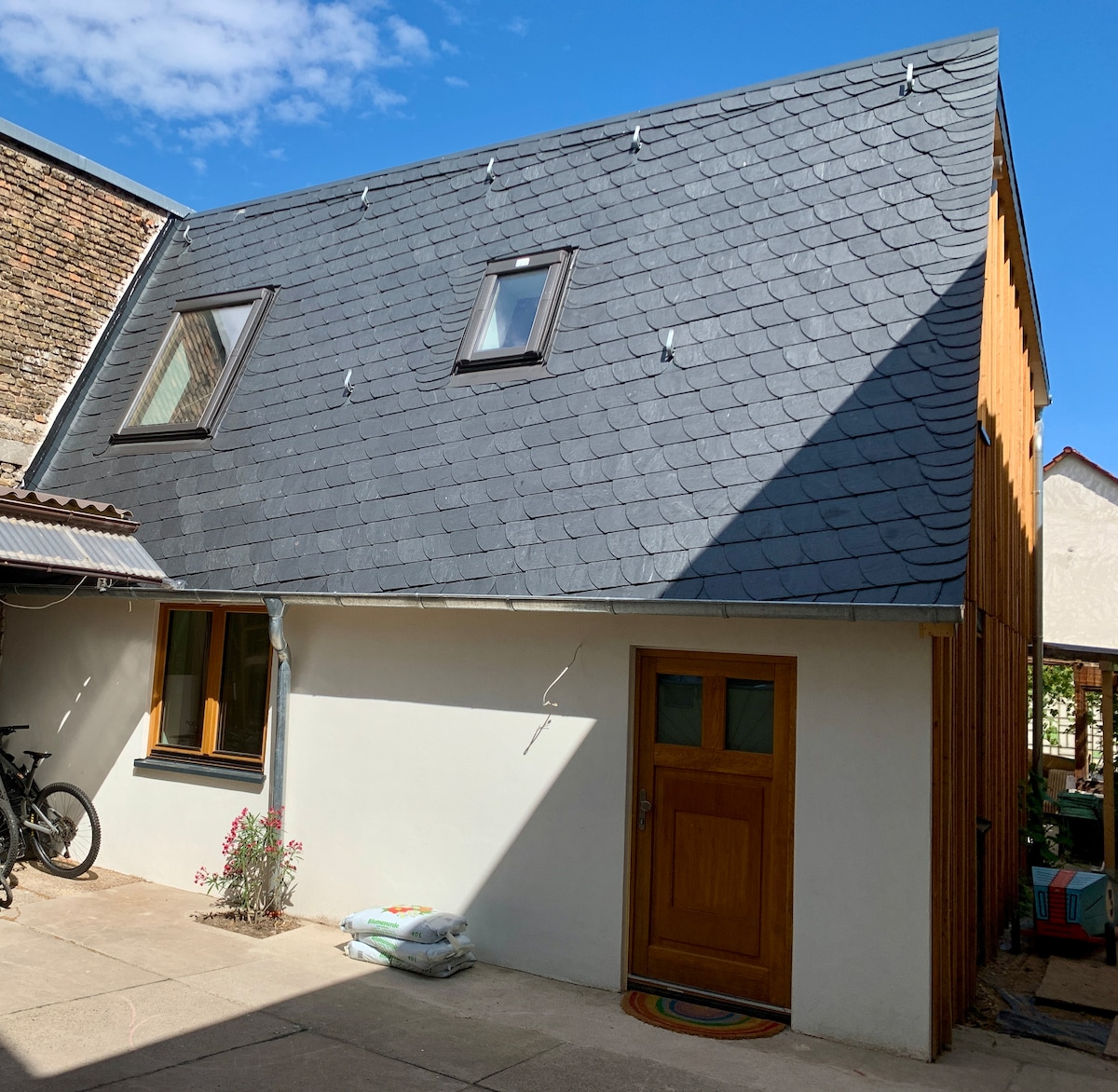 Sie bewohnen einen Teil des Hauses und nutzen es für sich alleine. Wohn-Essbereich und Küche befinden sich im Erdgeschoss. Ebenso das Badezimmer mit Toilette und Dusche. Im 1. OG können Sie 2 gemütliche Schlafzimmer nutzen. (Bett jeweils 160x200cm) Im 2. OG ist ein weiteres Bett (180x200cm) Die Bushaltestelle ist nur 1 Gehminute entfernt und nach Frankfurt benötigen Sie ca 30-40 Minuten. Ein Parkplatz ist am Haus verfügbar.
