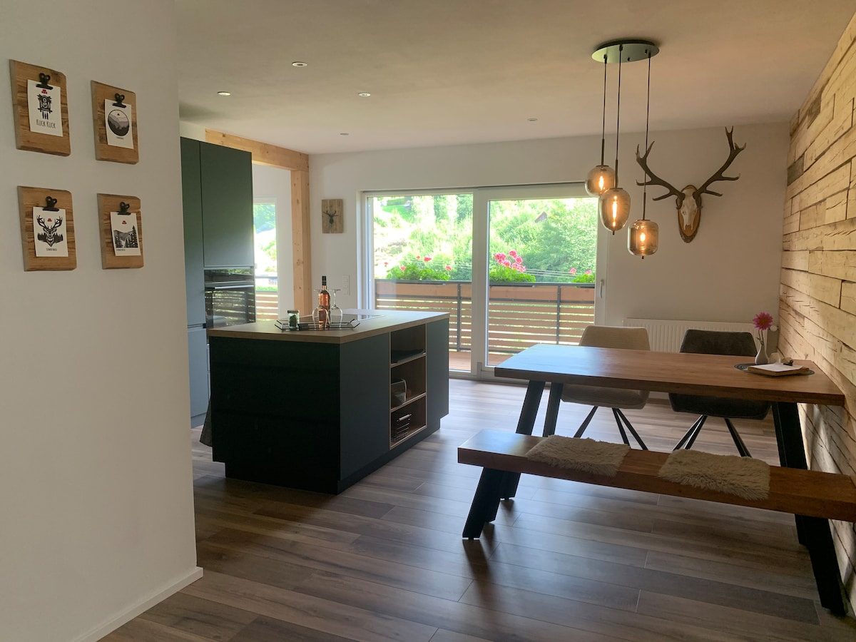 Moderne und liebevoll eingerichtete Schwarzwaldwohnung für die ganze Familie. Der perfekte Ausgangspunkt für Wander- und Radtouren durch den Nordschwarzwald. Die Wohnung ist voll ausgestattet, verfügt über eine offene Küche mit Ess- und Wohnbereich, ein Badezimmer mit begehbarer Dusche und einem Schlafzimmer mit 4 Schlafplätzen. Sie befindet sich im Dachgeschoss einer ruhigen Wohngegend und bietet einen schönen Ausblick. Die Wohnung ist über das Treppenhaus oder mit dem Aufzug zu erreichen.