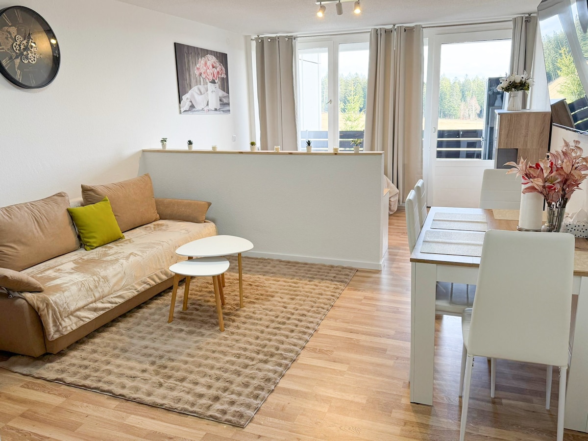 Diese neue großzügige Ferienwohnung lädt Sie ein, die Schönheit des Schwarzwaldes in vollen Zügen zu genießen. Wandermöglichkeiten bieten sich ab Haus. Das Herzstück ist die gemütliche Stube, die traditionellen Schwarzwaldcharme mit modernem Komfort stilvoll vereint. Ein wärmender Kachelofen mit Blick in die umliegende Natur sorgt für zusätzliche Behaglichkeit und Wohlgefühl. Der moderne Lift bietet Ihnen einen barrierefreien Zugang zur Wohnung.