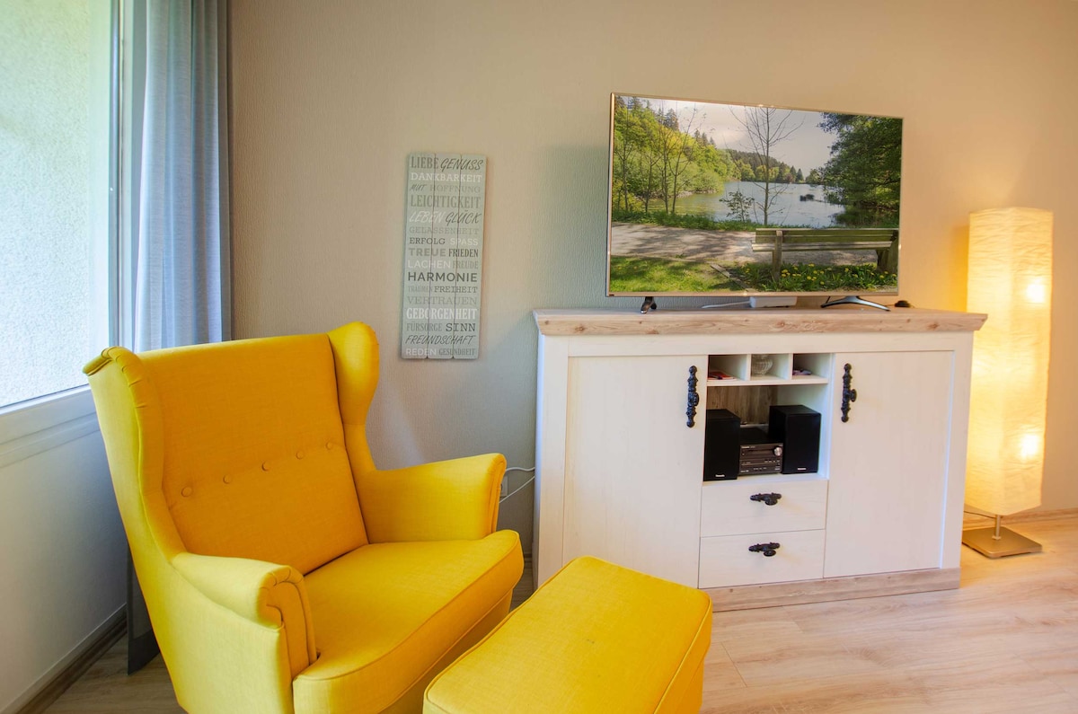 Das Studio-Apartment für 2 Personen mit Balkon im 1. Stock bietet alles, was es für eine entspannte Auszeit braucht. Es liegt direkt gegenüber des Kur-Parks mit dem Schmelzteich. Im Ort findet man viele Restaurants sowie alles, was man zum Leben braucht. Das bekannte Romantikhotel mit super SPA-Angeboten liegt nur 4 Häuser weiter. Die Küche ist voll ausgestattet, das kleine Bad ist mit einer hohen Dusche versehen. Das 140x200cm Bett lädt 2 Personen zum Kuscheln ein. Kurtaxe im Preis enthalten.