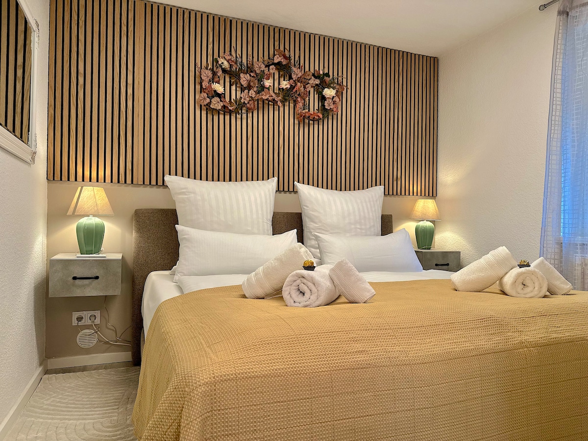 This modern 105 m² apartment, completely renovated in June 2024, offers spacious and comfortable accommodation for up to 6 guests. Located in the town center, directly opposite the park, it combines a peaceful setting with convenient access to the main attractions. Accommodation Description Bedrooms: Two separate bedrooms with comfortable double beds (180×200 cm and 160×200 cm). Living Room: Spacious living room with a sofa bed (140×200 cm). Pets are welcome for an additional fee of €10/night.