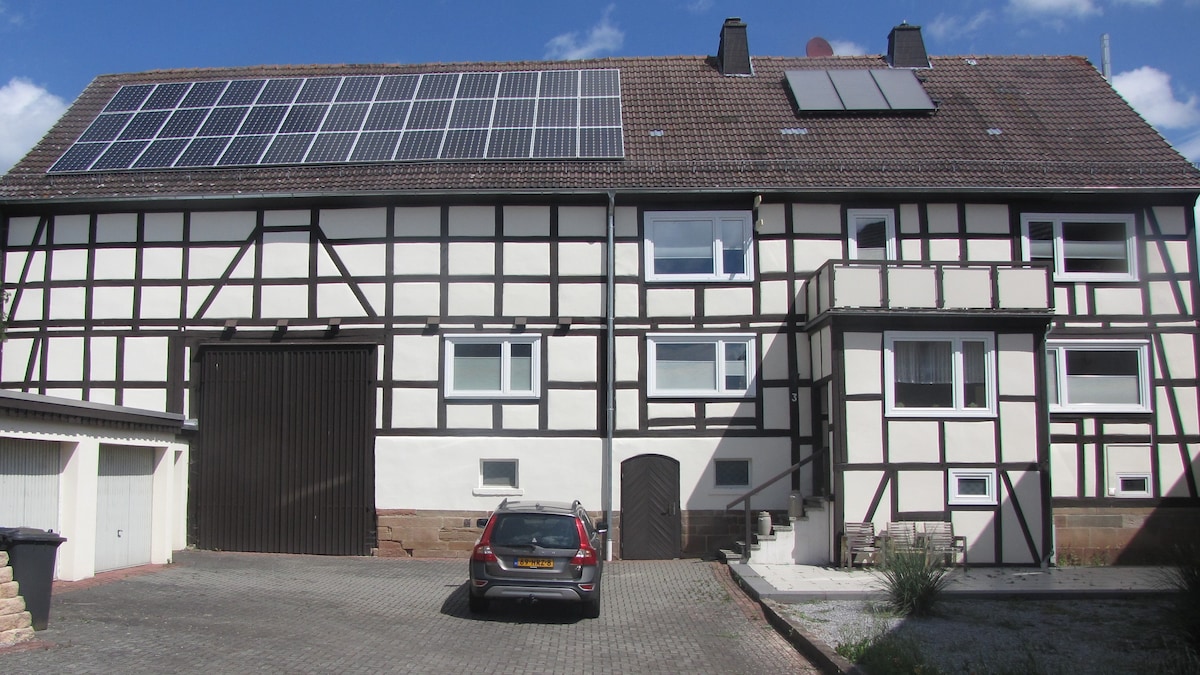 In the idyllic village Königshagen you will find our beautifully restored half-timbered farmhouse. The village is beautifully situated at 360 meters above sea level, right on the edge of the vast Habichtswald. Ideal for walking and tranquility. The house is very luxurious: three saunas, two bathrooms, pool table and much more! There’s lots to do in the area. Especially around the Nationalpark Kellerwald-Edersee.