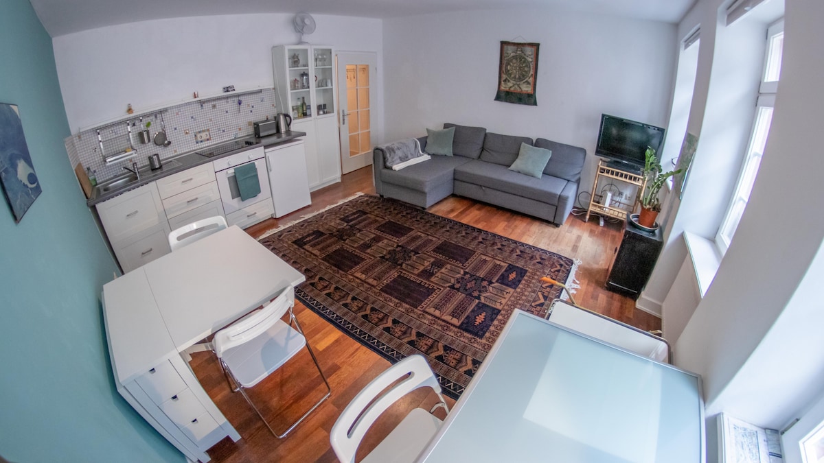 The apartment is in the station building, which was built in 1868 by the Baden district building authority Heidelberg from local, yellowish sandstone. The apartment is less than 5 minutes walk from the beautiful old town. You find in few minutes to foot numerous ✔Cafés ✔Restaurants & ✔Shops. The famous blue tower can be reached in about 10 minutes on foot and the river (Neckar) can also be reached on foot within a few minutes.