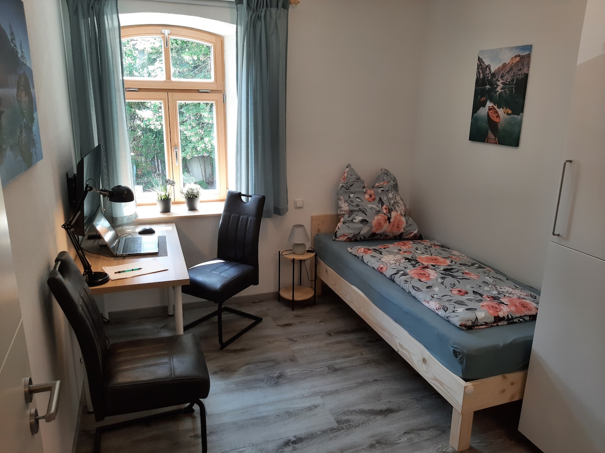 Unser Appartement ist für Homeoffice geeignet. Es liegt in ruhiger und sonniger Lage. Der Eingang ist separat und führt über das Treppenhaus ins Obergeschoss. Das Appartement ist ausgestattet mit Küchenzeile, ein gemütliches Einzelbett (1 x 2 Meter) und einer gemütlichen Sitzgruppe die ausgeklappt als Doppelbett benützt werden kann, sowie Essecke und TV. Das Bad, als eigener Raum, ist nur für Sie erreichbar. Ausgangspunkt für Ausflüge. Parkplatz, kleiner Sitzplatz im Garten unter den Bäumen.