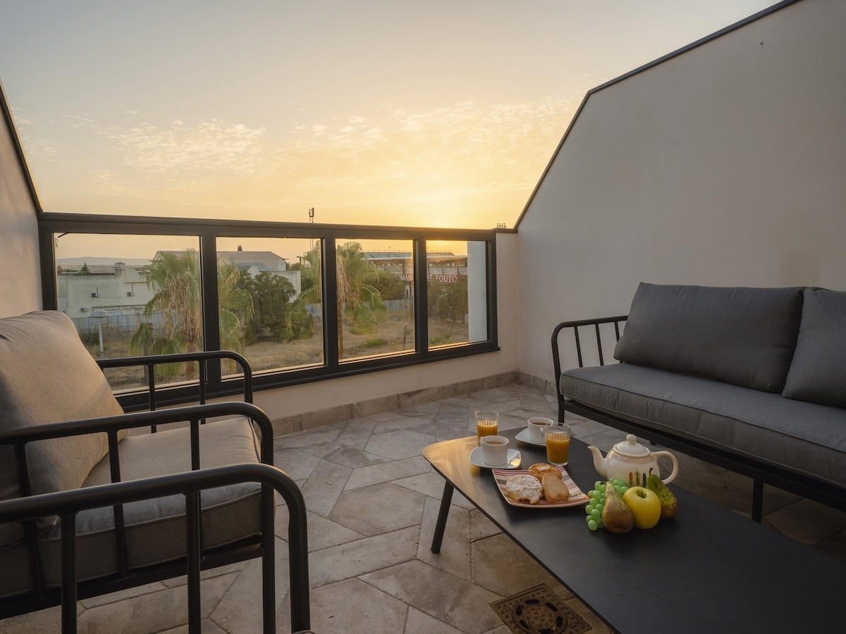 At Finca Bravo you can enjoy your romantic stay to its fullest: panoramic views over the surrounding hillside, a comfortable apartment with a super king sized bed (180x200cm) and an infinity swimming pool. You will have a fully-equipped kitchen, living/dining area, and an ensuite bathroom with a large walk-in shower. We provide all basic amenities (bed linen, towels, fast wifi, shampoo, etc). Watch the sunset from your large yet private terrace with 360° views over the surrounding natural park.