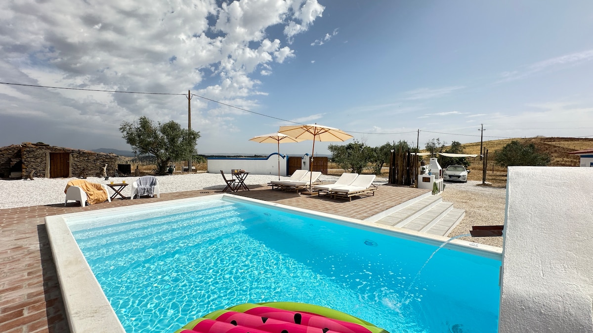 Monte Mi Vida Villa is nestled in the quiet country side of Alentejo. The perfect secluded place to relax and recharge.You can Spend your day exploring vineyards and wineries, local markets, Lake Alqueva for fishing, boating water sports or some beach fun, Some history of Portugal or Dark sky Alqueva for the indescribable feeling of stargazing. You can also just sit poolside and let your worries melt away. Look at west and you will forever remember the breathtaking sunsets with a glass of wine.