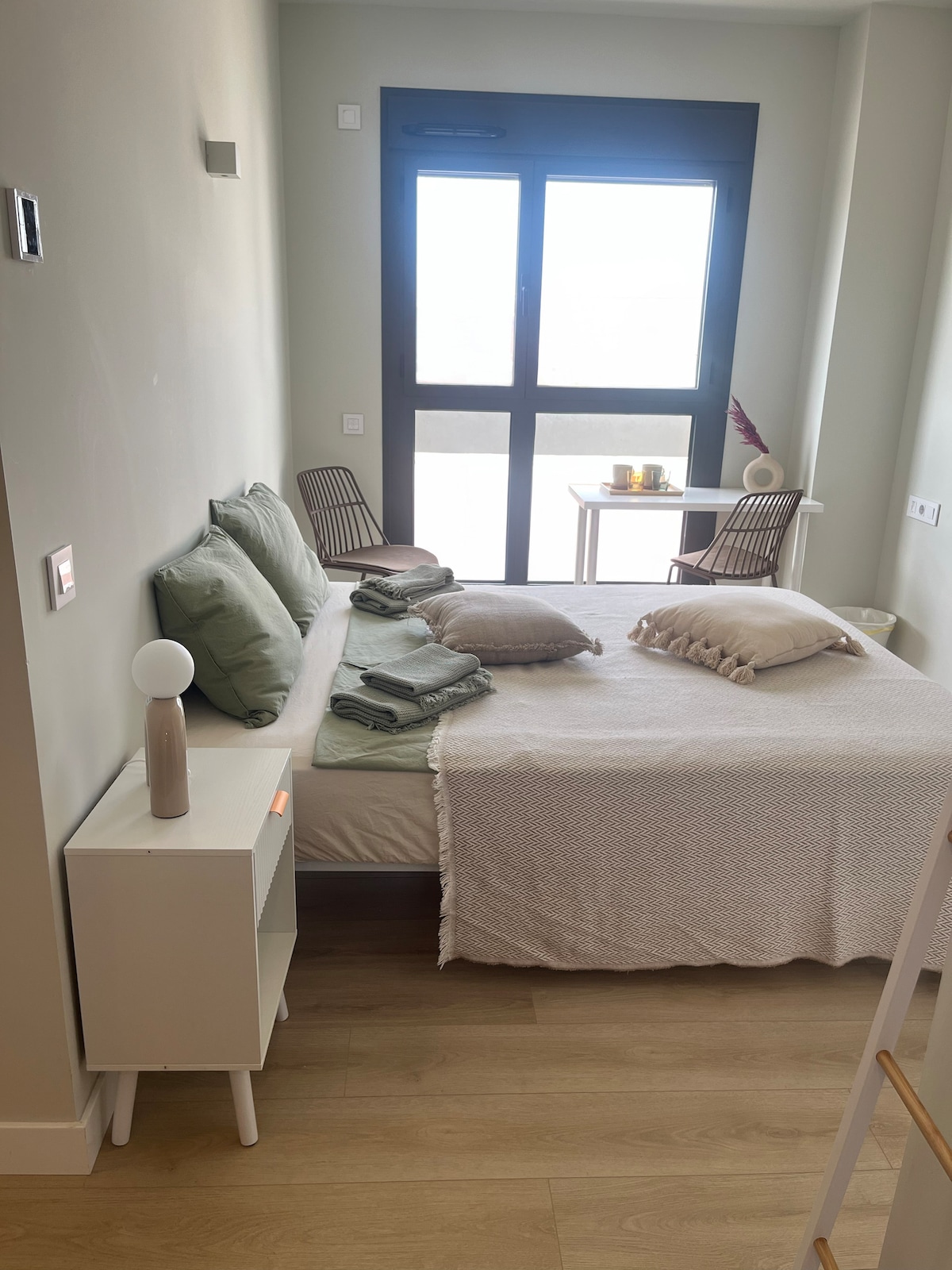 Piso muy bien situado, cerca de todos los servicios. A solo 3' de la playa y a 5' del centro y estación de tren Renfe R1. Totalmente equipado. Dispone de 1 habitacion con 1 cama de matrimonio y 1 cuarto de baño con plato de ducha, recien reformado. Cocina completamente equipada, cafetera Dolce Gusto, microondas/horno y lavadora compartida. Pequeño balcón donde podrá ver el mar. Colchón viscoelástico. Dispones de 600 MB de FIBRA para teletrabajar. HUTB-033567