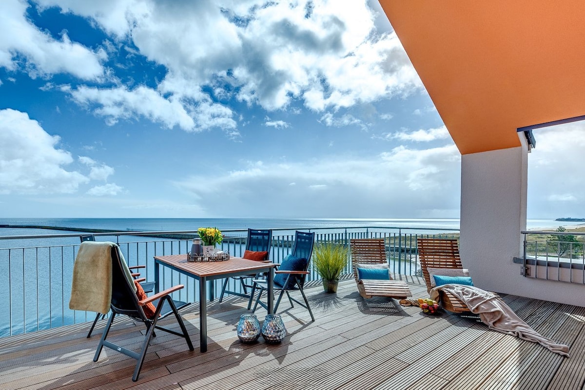 Located on a narrow headland between the Baltic Sea fjord Schlei and the sailing and sports boat harbour of the OstseeResort Olpenitz, this holiday apartment impresses with its spaciousness, a fantastic view of the water on both sides and all-day sun on the large south-facing terrace.