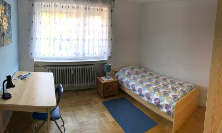 Romantisches Gästezimmer mit separatem Eingang, eigenem Bad und Küche in einer stilvollen Villa aus den 1920er-Jahren. Durch die gläserne Eingangstür gelangt man direkt in den Garten mit großer Sonnenterrasse und freier Aussicht auf Schloss Hohenbaden und die Battertfelsen. Perfekt gelegen für Entdeckungen in Stadt und Natur: 800 Meter ins Zentrum, fünf Minuten zu Fuß zu Merkurwald, Bergbahn und Wildgehege.
