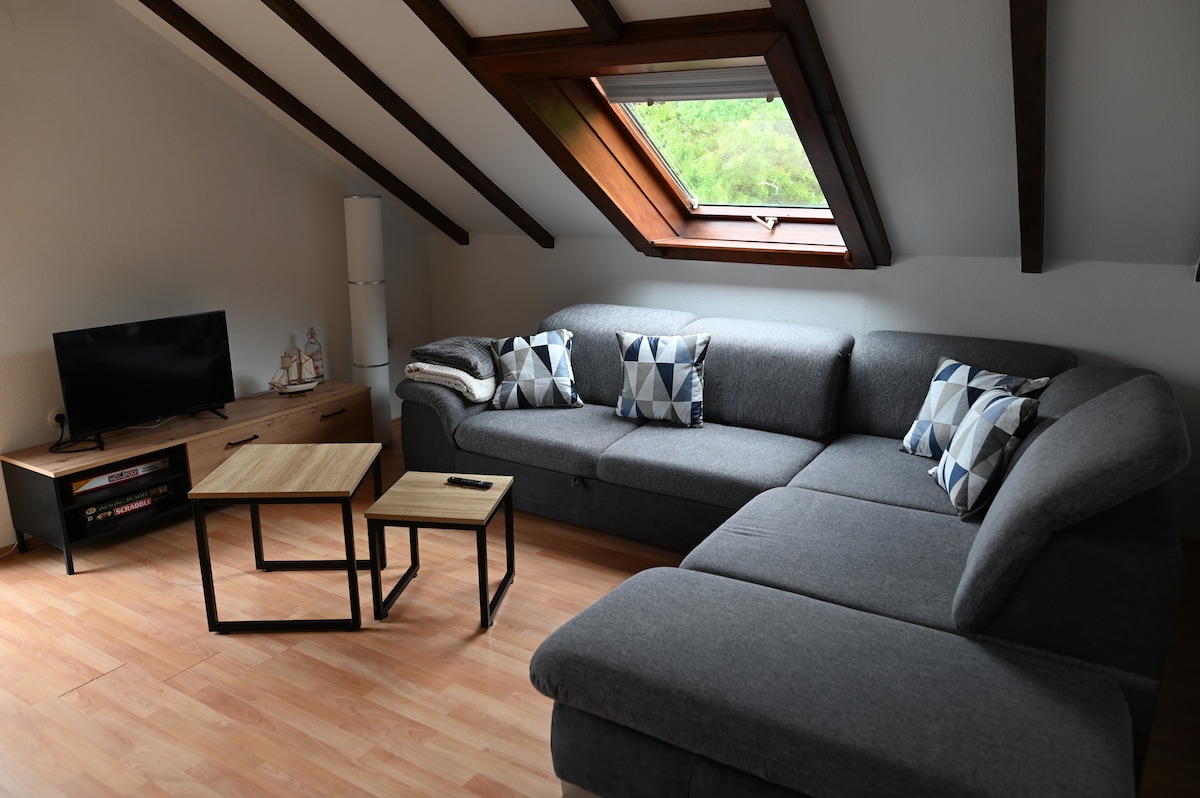 Mit viel Leidenschaft & Liebe zum Detail eingerichtete Ferienwohnung. Der ideale Ort um bei knisternder Gemütlichkeit die Seele baumeln zu lassen. Großzügig geschnittene Räume, für viel Ruhe und Privatsphäre. Das Besondere Highlight: Das Wohnzimmer verfügt über einen eigenen Kamin und vielen Büchern zum schmökern. Jeder Raum ist gefüllt mit Licht, Luft & Leichtigkeit. Von jedem Zimmer aus gelangt man direkt auf einen Balkon mit Blick in die traumhafte Natur. Wanderwege beginnen direkt am Haus.