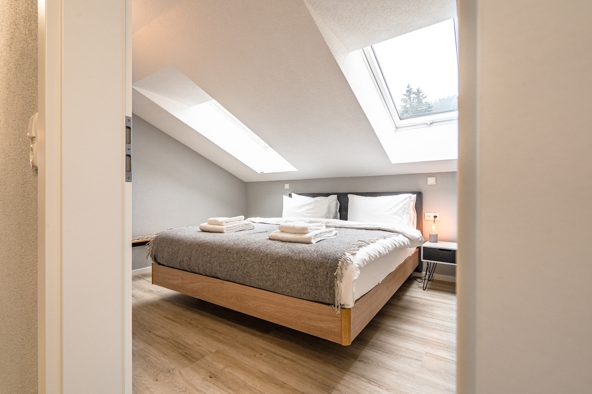 Unser Glitzer-Apartment "Lifestyle" mit Küche und Design-Bad in offener Dacharchitektur unter massiven Holzbalken. Lasst euch vom Themenzimmer "Panther" verzaubern. Hier können 2 Personen traumhaft unter den Lichtersternen schlafen. Im schicken Badezimmer mit moderner Hintergrund-Beleuchtung lässt es sich mit Musik beschwingt duschen, während in der eigenen Küche schon der Kaffee kocht. Zum Frühstücken bietet der Bäcker um die Ecke leckere Backwaren. Im Gemeinschaftsgarten könnt ihr entspannen.