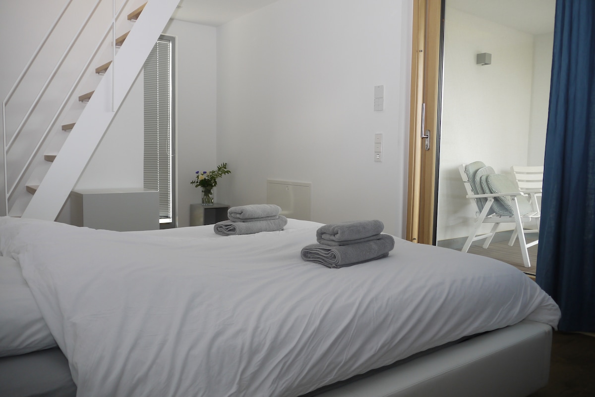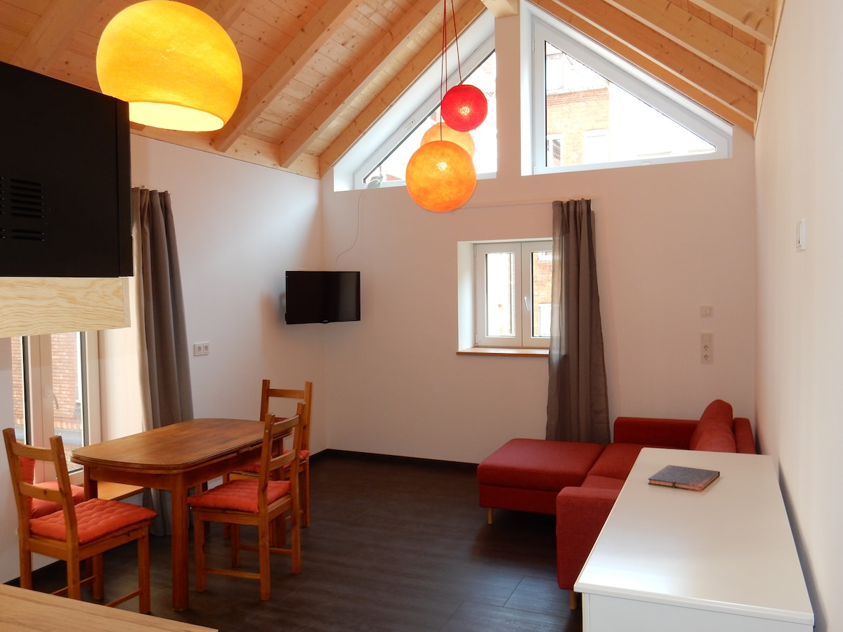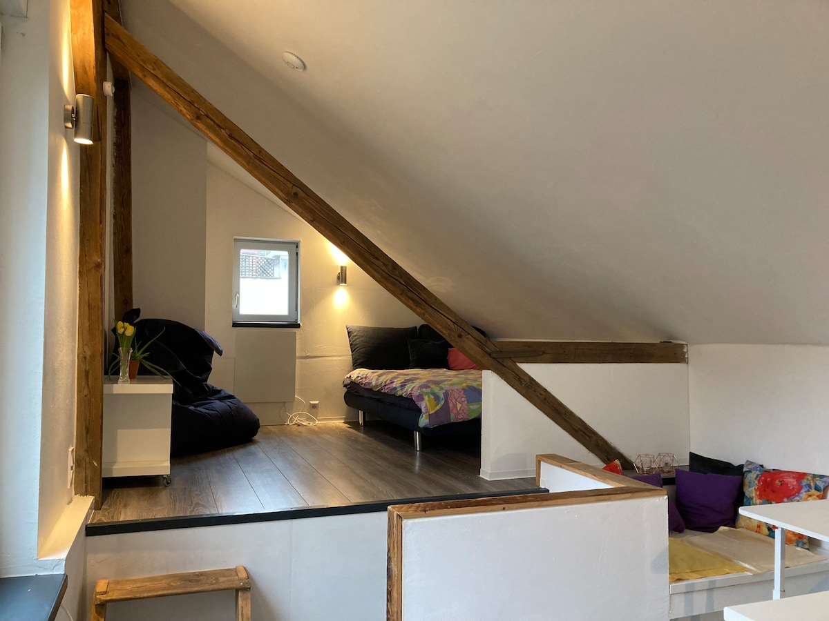 Our beautiful and homely apartment is well served by public transport, 10 - 15 minutes walking distance to the city center, to shops, to art and culture or to the nature (parks/river). The apartment is bright and looks very airy due to the high visible roof structure. There is a comfortable bed, a cozy living room and a fully equipped kitchen. The apartment is suitable for couples, small groups / families and business travelers.