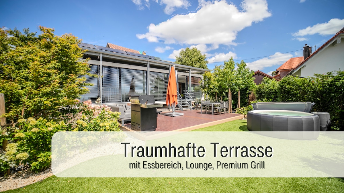 Quiet and bright. Fully equipped kitchen, barbecue, fire pit and fitness area with punching bag, dartboard and table tennis table. Activities for the whole family: hiking, cycling, skiing, Ravensburger Spieleland, brewery tours, Ikarus Festival, Rapunzel visitor centre, thermal baths and swimming lakes. Perfect starting point for Neuschwanstein, the Alps, Munich, Lake Constance. Covered parking spaces (carport) Accessible by train (Aichstetten station)