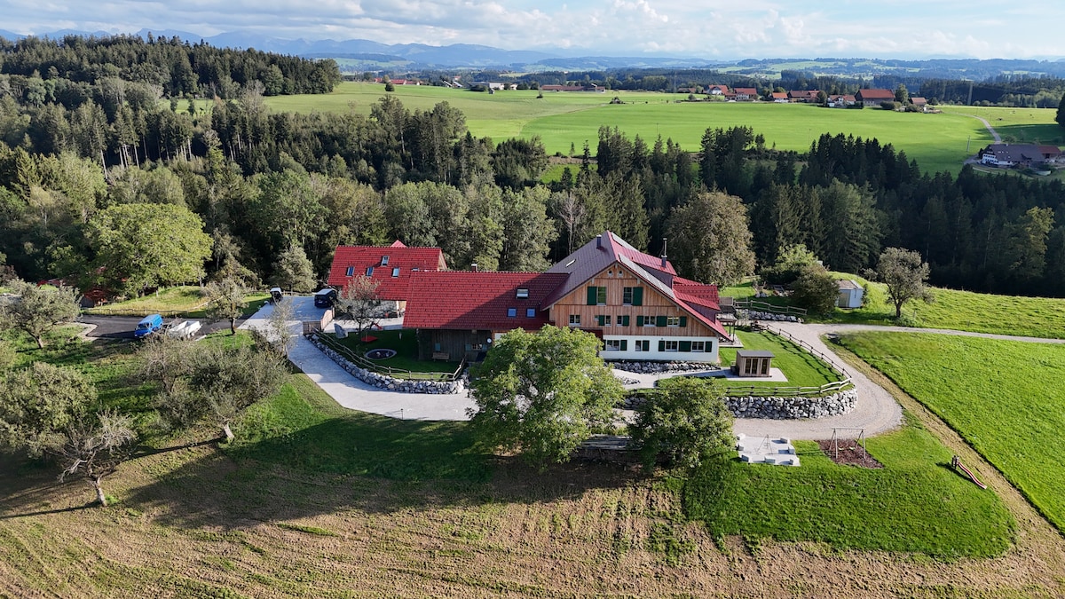 Großzügige 2-Zi-Wohnung mit Panorama-Balkon auf abgelegenem Bauernhof mit vielen Tieren. Zusatzzimmer vorh. (Nr.2 u 3). Kinder bis 12 Jahre gratis - bitte nicht eintragen! Gerne kann beim Melken der 70 Kühe geholfen werden, es gibt Pferde für Spazierritte und Reitstunden nach Absprache/Bezahlung . Rustikaler Pool mit eigenem Quellwasser. Frühstückszutaten vorh. - muss aber selbst zubereitet werden. Idealer Startpunkt für Naturerlebnisse, auch interessante Städte/Museen/Erlebnispark in der Nähe.