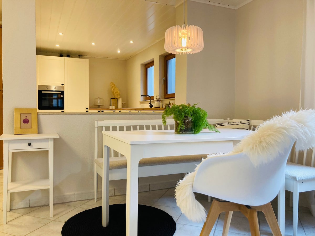Upscale accommodation in modern style! Ideal for singles or couples - have your peace and enjoy a time out. - Skiing, hiking, biking, hiking, and more - Neckar and Black Forest peaks right outside the door - Fitness & Wellness: sauna, dumbbells, HulaHoop, 2 Mountainbikes - Fully equipped kitchen with all the trimmings - Great south-west sunny balcony - Lounge area (chill or remote work) - Underfloor heating with cozy oak wood parquet flooring - Nespresso machine - eCharging Wallbox
