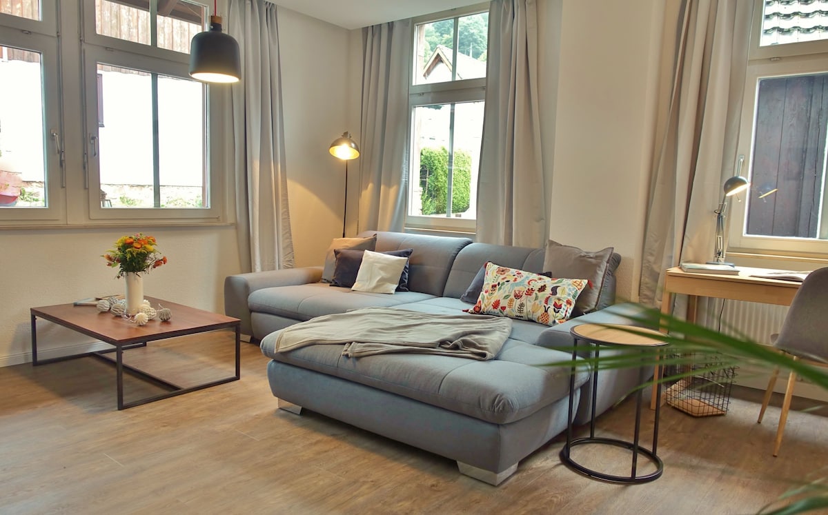 Upscale accommodation in modern style! Ideal for singles or couples - have your peace and enjoy a time out. - Skiing, hiking, biking, hiking, and more - Neckar and Black Forest peaks right outside the door - Fitness & Wellness: sauna, dumbbells, HulaHoop, 2 Mountainbikes - Fully equipped kitchen with all the trimmings - Great south-west sunny balcony - Lounge area (chill or remote work) - Underfloor heating with cozy oak wood parquet flooring - Nespresso machine - eCharging Wallbox