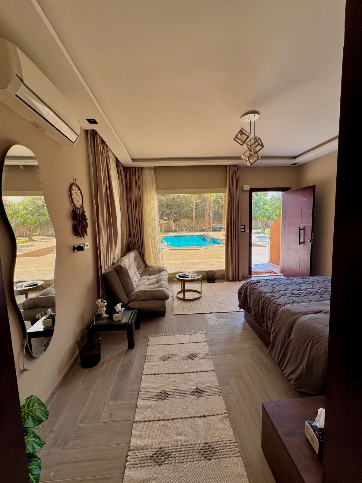 A fabulous, newly finished 4 bedroom villa and 2 bedroom guest house nestled in a large garden with swimming pool, all with breath taking views of the Abu Sir Pyramids. This is a perfect place for a family and friends retreat but we are unable to host any large events such as birthday parties, engagements and weddings.