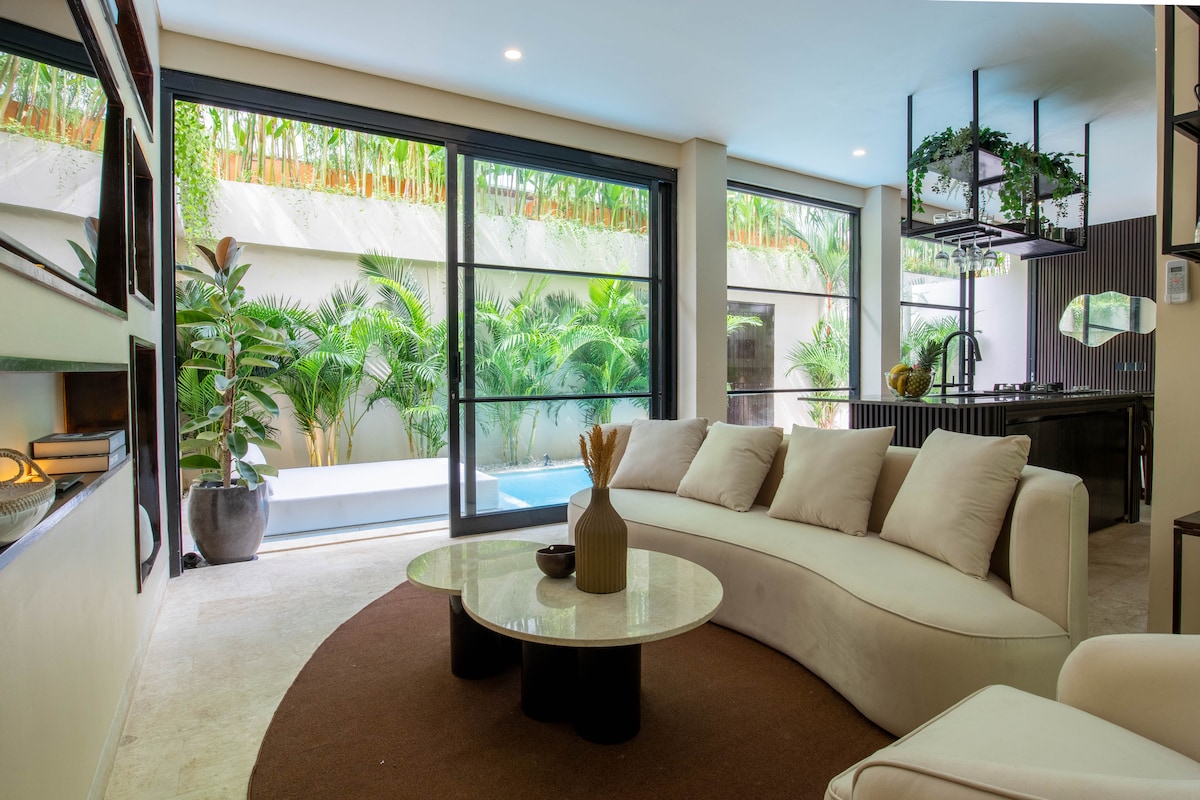 Welcome to our luxury villa in the heart of Canggu, just 500m from the beach and surrounded by 30+ cafés and restaurants within walking distance. Enjoy carefree days with your private pool, tropical garden and daily cleaning. Everything is arranged for comfort: ✔ Private pool ✔ Daily cleaning ✔ Beach & bath towels included ✔ Fresh drinking water dispenser ✔ Skylight bathtub ✔ Tropical bedroom view ✔ Fully equipped kitchen ✔ Fast WiFi ✔ Smart TV ✔ 40+ restaurants within walking distance