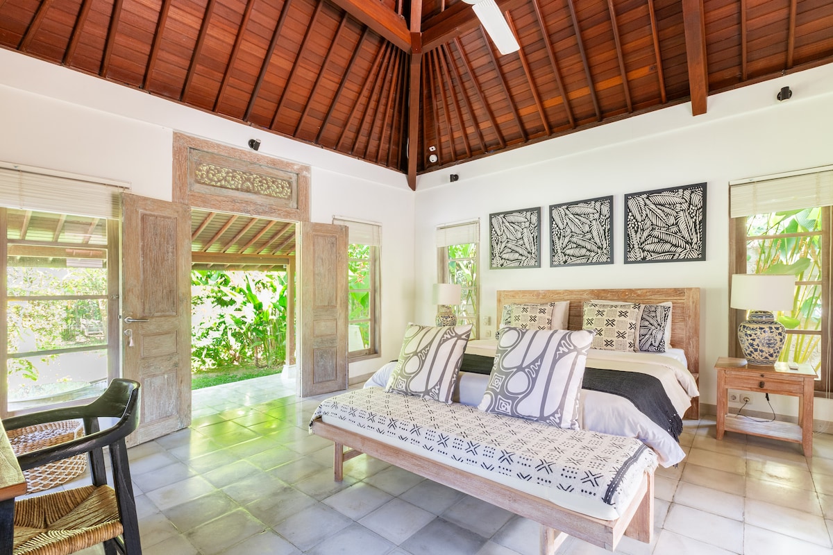 Discover many surprising ways to unwind in this self-contained Villa Bungalow within our sprawling estate. Wander lush gardens, sway in a vintage-style tandem swing, or relax by the natural stone pool. Soak in a designer tub or choose a book that tickles your fancy and relax on the breezy patio/veranda daybed. Your King Bed is like sleeping on a cloud. Also included: - Separate kitchen - Daily maid/housekeeping service - Up to 150mbps Wifi - 8-10 min walk to the beach - Peaceful, quiet