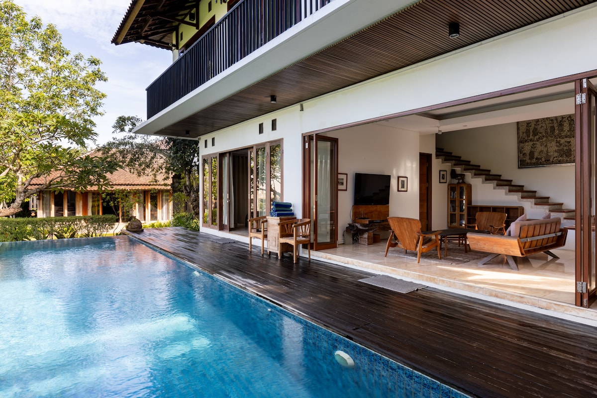 A BLEND OF LUXURY, URBAN COOL & SOPHISTICATION Come and stay in architectural gem built by an award-winning architect. Villa Lesanka - totally edgy and stylish yet in harmony with its tranquil surroundings. Our villa offers all the up-to-date details expected by high-end travelers. Proximity the several beaches and lively village Canggu. Place is greatly equipped with modern quality appliances, Smart TV, small bar, Fast and stable WiFi, and a KingKoil bed - sleep like in heaven.