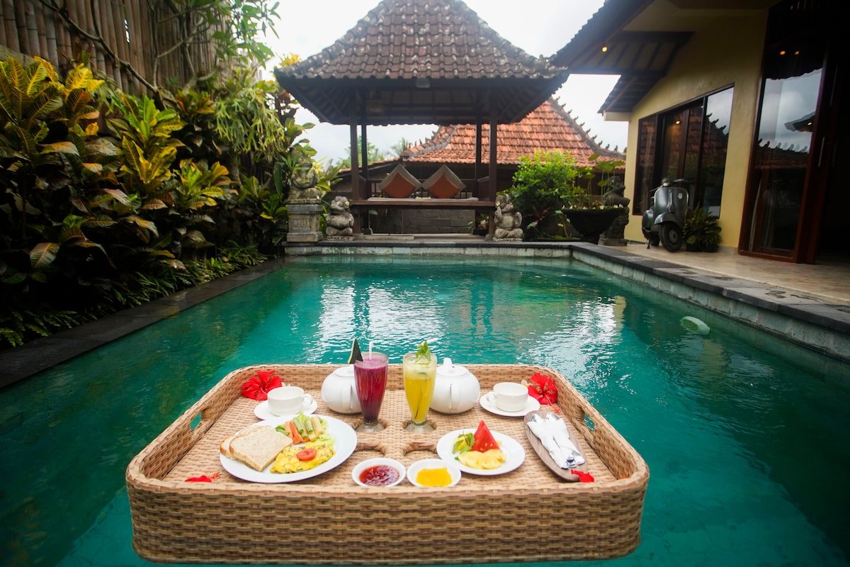 Perfect for couple or two friends that travel together looking for staying in the nature with jungle and rice terrace view. Staying with us, mean you will have a great opportunity in joining our Bali way of life . You can join us in our farm and joining our local village ceremony. The house itself build using old recycled wood with unique vintage feature. It is also completed with private infinity swimming pool and kitchen . Breakfast in included. Other meal can be provided at extra cost.