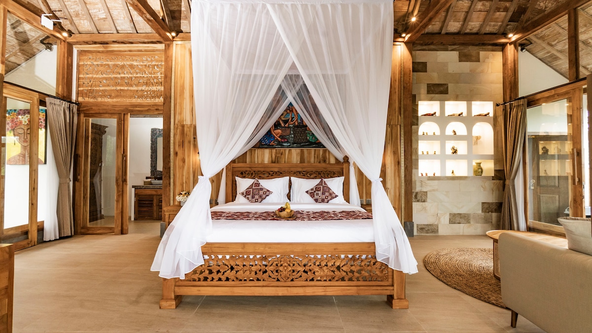 Sleep Under a Dreamy Canopy at a Traditional Teak Joglo