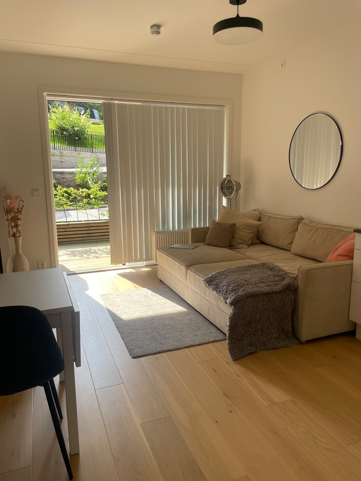 Escape to a modern and cozy 2-room apartment in the heart of Fornebu/Lysaker. This charming 41kvm apartment (10kvm balcony). Nestled on the second floor with a west-facing terrace. The apartment's modern yet inviting design, a blend of functionality and comfort with a fully equipped kitchen. A short distance from the Oslo Fjord, and the convenience of a 6-minute walk to the bus stop, connecting you to city center with a 18 min buss ride.