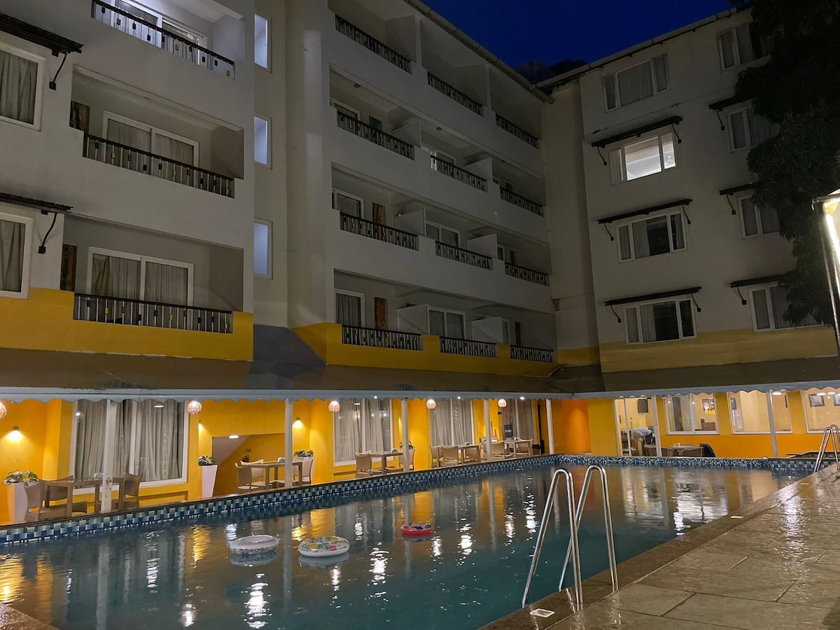Warm, spacious & classy fully-furnished luxury ultra-spacious room with swimming pool in the very heart of Calangute! Bed room is large & have private attached bathrooms & you have ample space in the room for chilling-out. The famous Calangute Beach gets you fantastic view of beach which is walkable from hotel. Calangute, Baga and Anjuna Beach are just 1.4, 3.3 and 7.7 KM from Property respectively