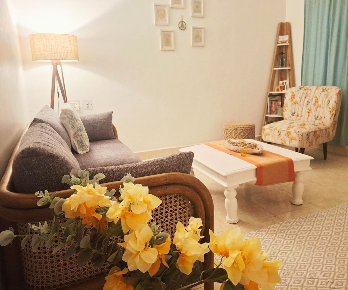 Modern Boho Apartment | Minutes from North Goa's Beaches.A cosy, fully furnished 1BHK retreat perfect for couples, friends, or small families. Highlights: - Stylish boho interiors with a warm vibe - AC in bedroom & living room for comfort - Smart TV + High-speed WiFi - Equipped kitchen with RO water, cooktop, fridge & washing machine - Shared swimming pool (9 AM–6 PM | swimwear mandatory - On-site gym available as a paid facility - 24/7 security for peace of mind - Free Parking