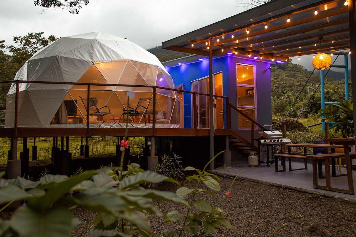 Bitzu Dome is a Bijagua Riverside Glamping, the perfect place to relax in nature surrounded by animals, volcanoes, rivers, waterfalls, adventure in nature and many more. If you like mountain hikes and adventure, you will love that place. We are the only one Glamping in the area and the Dome is located only 20 minutes from the Tenonio Volcano National Park where the celeste river is located. Relaxing place, perfect for an unforgettable vacations.
