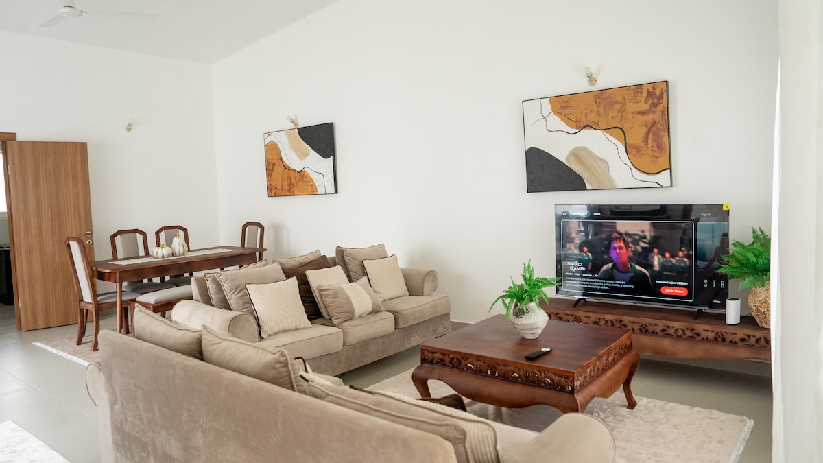 Step into this luxurious Airbnb apartment, where comfort meets elegance in every corner. With three spacious bedrooms and three bathrooms, there's plenty of space for you and your companions to unwind and relax. Each bedroom is thoughtfully designed for optimal rest, featuring plush bedding, ample storage, and tasteful decor.