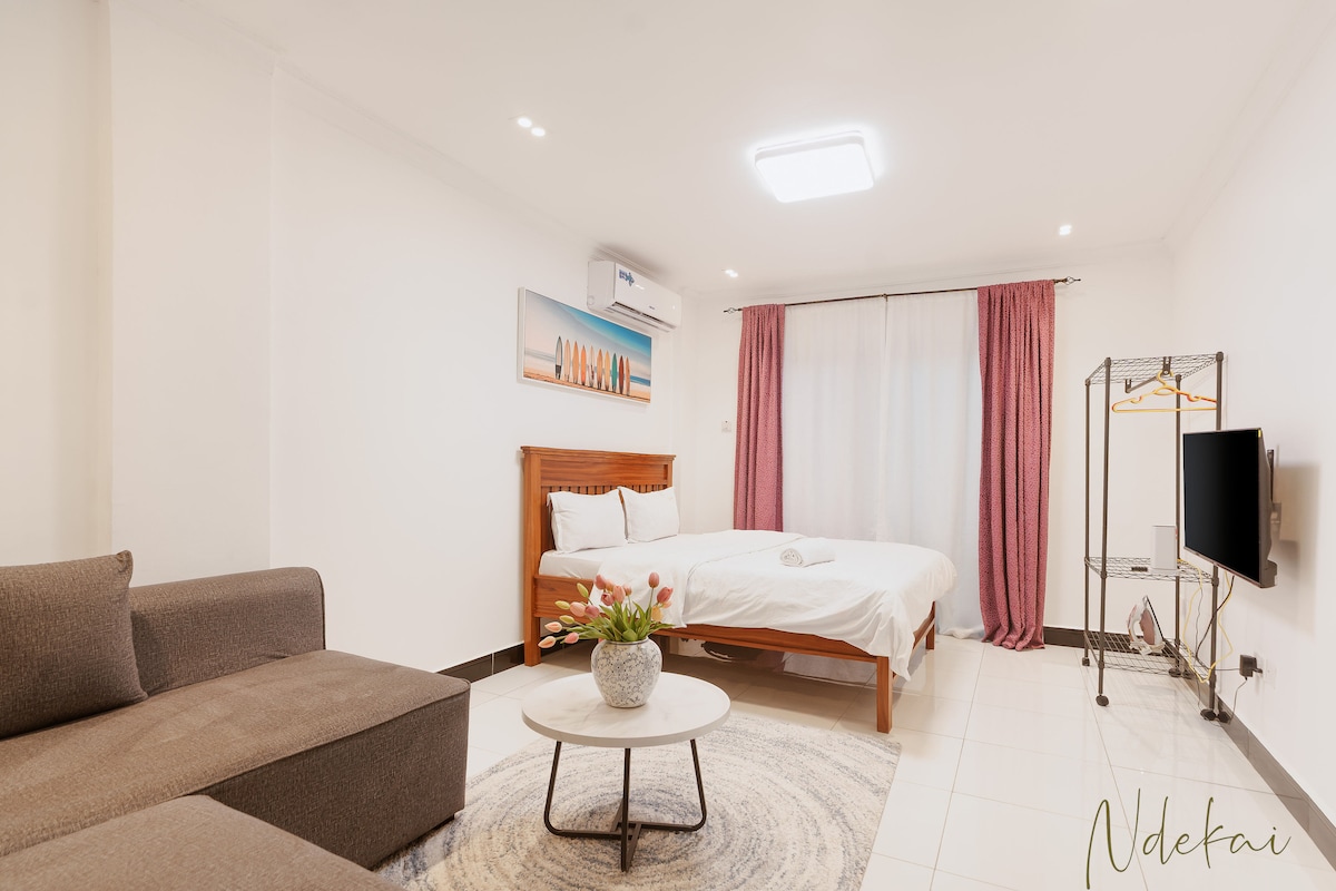 Whether visiting Dar es Salaam for business or leisure, our apartment offers a sophisticated city escape where comfort, privacy, and convenience meet. This elegant 1-bedroom residence is set in a prime, serene neighborhood near Masaki, Msasani, CBD, and Upanga—just 1 minute from Dar Village Mall and Kuku Kuku Bar & Restaurant. Enjoy a cozy bed, private bathroom, 32” Smart TV, sleek workstation, modern lighting, and ample storage—perfect for relaxing, working, or exploring the city with ease.