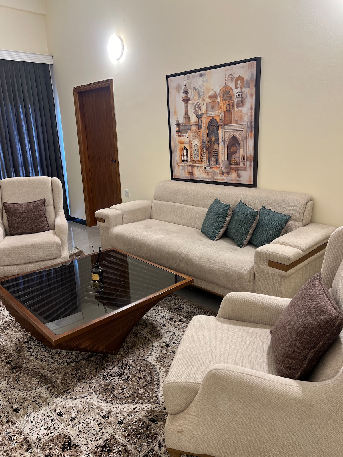 Forget your worries in this spacious and serene space consisting of 1 double bed and 2 single beds. inside the compound a super market ,laundry , bakery . Full air conditioning and 24/7 electricity