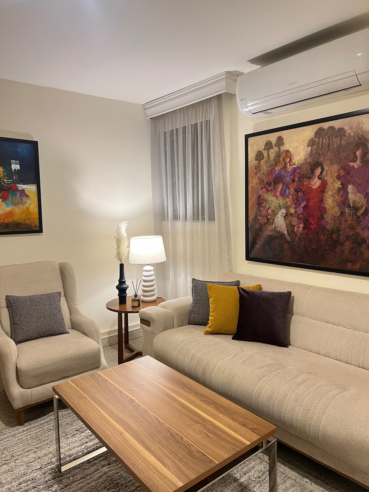 Experience the heart of Baghdad from the comfort of our cozy 2+1 apartment, nestled in the vibrant Al-Mansour neighborhood. Located on 14th Ramadan street, you'll be surrounded by the city's best restaurants, cafes, and amenities, all within walking distance. Our apartment is situated in a secure 4-floor building, with friendly neighbors and a welcoming atmosphere. As you step inside, you'll be greeted by the warm and inviting decor, perfect for relaxing after a day of exploring.