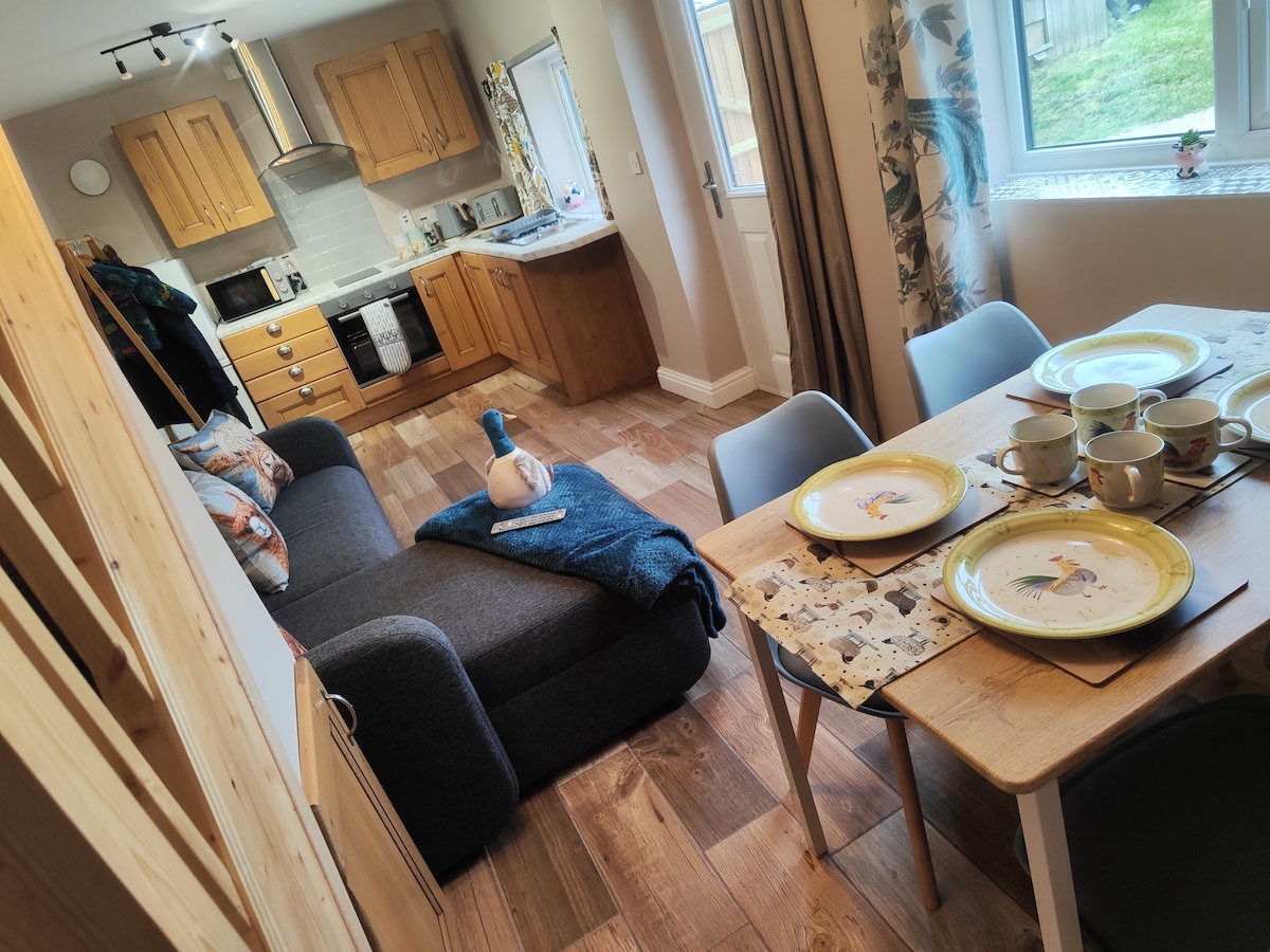 Located in a lovely rural farming village in the Staffordshire Moorlands boasting many public footpaths for walkers. Our self contained studio accommodation, is located in the garden area of the property and features a lovely view of our garden. It is perfect for guests seeking a comfortable and private base to enjoy and explore the beautiful Staffordshire Moorlands, Peak District & Alton Towers. There are 3 local country pubs serving food (walking distance) Fishing pool & recreation ground.
