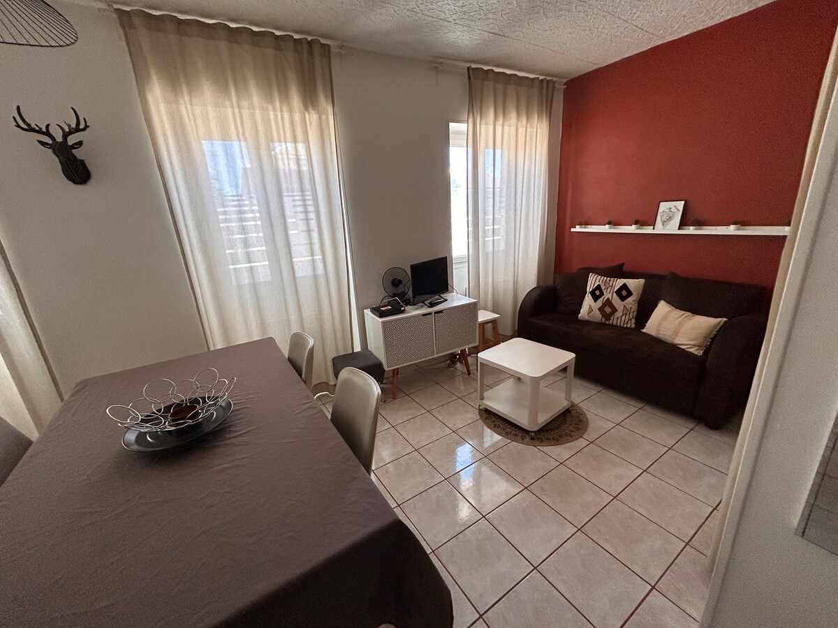 ** Tarif spécial CURISTES, n’hésitez pas à nous demander ** Appartement T2 entièrement rénové et équipé, lumineux avec belle terrasse sans vis-a-vis. Au calme avec places de parking gratuites non privatisées et à 2 pas de toutes les commodités : boulangerie, boucherie, pharmacie, magasins bio dans la rue. Carrefour market et station essence à 5mins à pieds. Hyper-centre à 5 mins à pieds. Cures à 10 mins à pieds. Votre séjour en toute sérénité dans ce logement calme et confortable