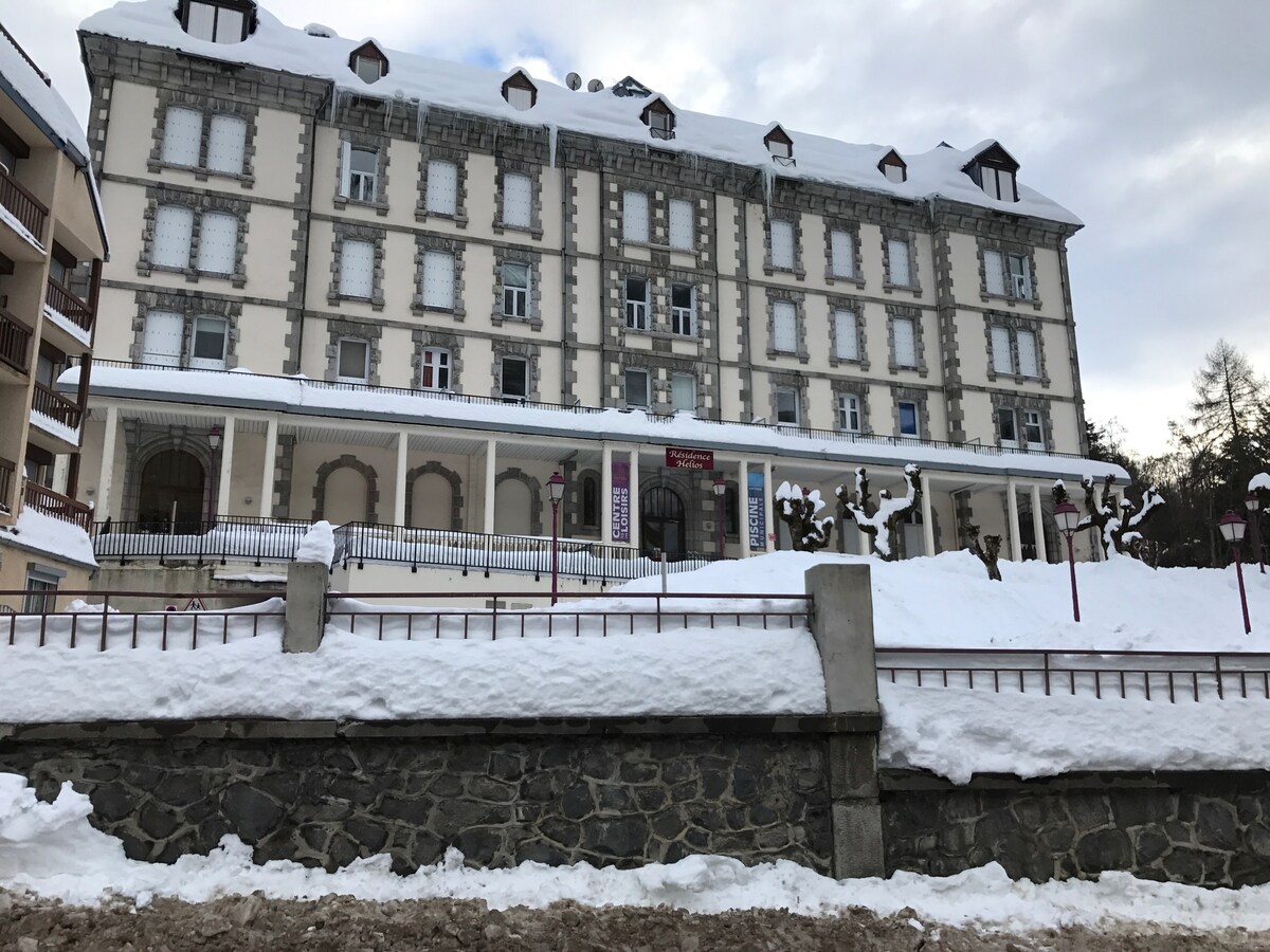 Appartement de 36m² avec terrasse de 15m², 4 personnes confort, 4/6personnes (5 adultes maxi) dont internet gratuit, dans résidence hélios au 1er étage avec ascenseur. Classé 3 étoiles pour 4 personnes Baignoire, WC séparé 2 téléviseurs dont replay, prime vidéo… Lave linge/séchant, lave vaisselle, plaque induction, cafetière Nespresso/Dolce gusto Air fryer Activités, randonnées , thermes, cures, ski Arrêt navette ski bus devant la résidence, départ des pistes de ski à 7 minutes en navette