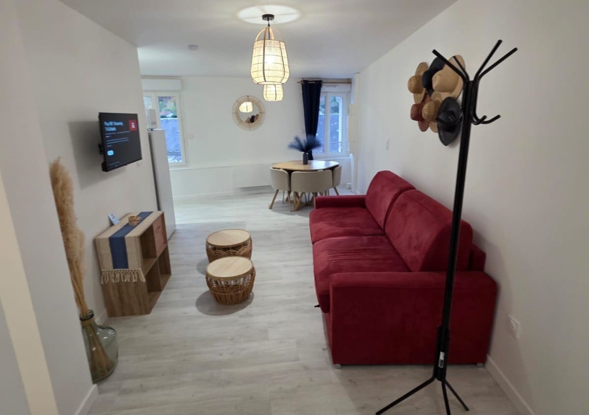 ** Tarif spécial CURISTES, n’hésitez pas à nous demander ** Appartement T2 entièrement rénové et équipé, lumineux avec belle terrasse sans vis-a-vis. Au calme avec places de parking gratuites non privatisées et à 2 pas de toutes les commodités : boulangerie, boucherie, pharmacie, magasins bio dans la rue. Carrefour market et station essence à 5mins à pieds. Hyper-centre à 5 mins à pieds. Cures à 10 mins à pieds. Votre séjour en toute sérénité dans ce logement calme et confortable