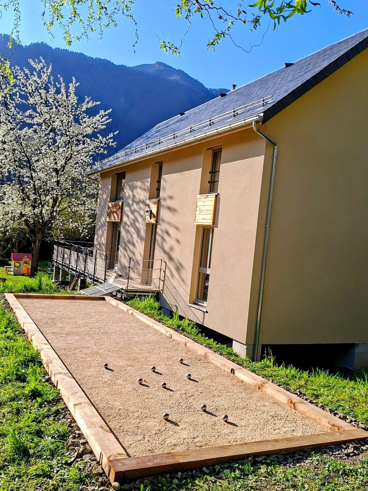 A welcoming mountain home, you'll feel right at home in the magical world of snow-covered landscapes. Built 250 years ago, it nestles in the heart of the mountains, between Superbagneres and Peyragudes, on the banks of the tumultuous Neste d'Oô, at the edge of the forest. A sunny terrace where you can enjoy your meals overlooking the river. Skiing, hiking, mountain biking, fishing- this is a holiday in the heart of nature.