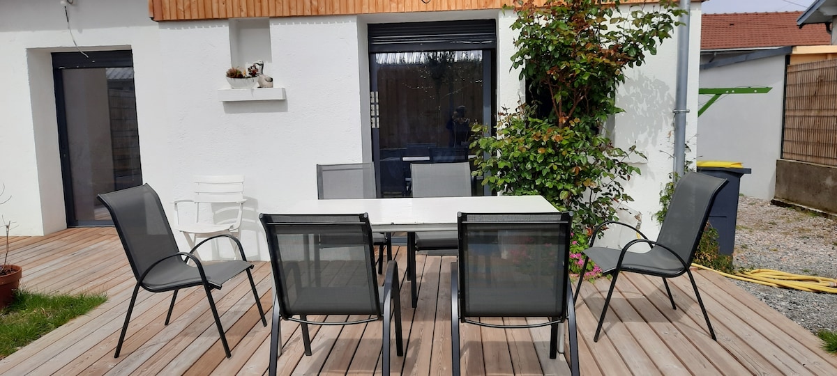 Ce logement familial est proche de tous les sites et commodités.C’est une petite maison préservée du regard et des bruits de la route ,très cocooning elle saura vous charmer .Tout peut se faire à pied et elle dispose de tout le confort nécessaire pour 5 personnes .Même si son salon reste petit, sa cuisine relativement grande permet d’y manger à 5 sans problème.
