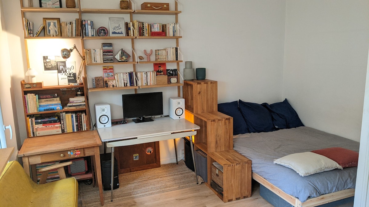 A 10mn à pied de la mairie de Montreuil, ligne métro 9, accès direct Paris centre en 20mn. Beau studio indépendant, 20 m2, sur jardin, très calme et lumineux. Il se compose d’un séjour/chambre, avec cuisine fermée et équipée, réfrigérateur, combiné grill/micro-onde, plaques électriques, grille pain, cafetière, bouilloire, fenêtres en double vitrage et volets roulants électriques. Salle de bain avec douche et toilettes. un petit coin de paradis, avec une table, barbecue et transats en extérieur.
