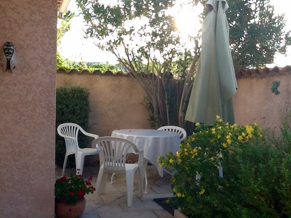 Studio 4 personnes (2 adultes/2 enfants) indépendant de la villa. Au RDC, pièce à vivre donnant sur une terrasse avec BBQ, un canapé lit 2 personnes, une tv, un coin kitchenette avec le nécessaire (lave vaisselle, micro ondes, mini four) et une petite salle d'eau avec un toilette. En mezzanine, un lit futon de 140 cm accessible par une échelle. (Hauteur sous plafond 150 cm) Le studio est climatisé. Piscine à partager avec les propriétaires. Draps et linges de toilettes fournis.