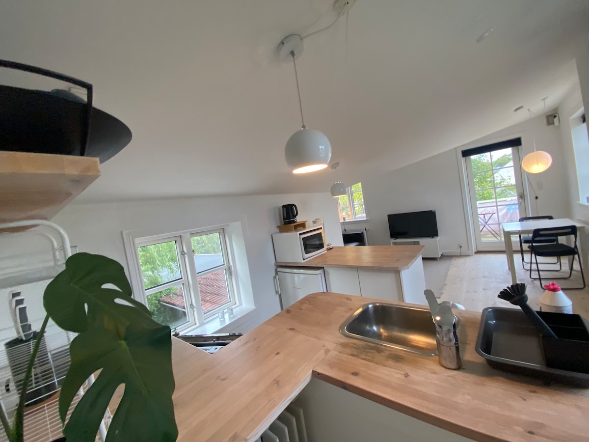 God varm hybel I har for jer selv med mini køkken, badeværelse og skøn seng med dun dyner. Egen indgang. Dejligt miljø. Wifi samt tv. Ekstra lille hygge stue med radio. Jeg vil være til jeres rådighed med alle spørgsmål. Der er god plads til jeres ting. Inklusiv sengetøj/håndklæder. Stort udvalg af cafeer, restauranter, supermarkeder og special butikker + bedste ismejeri : ) 10 min. gang til Dyssegård St., tog til centrum, 15 min. Bus 6A (3 min.) til centrum, 20-25 min. Obs. Loftshøjde 190 cm.