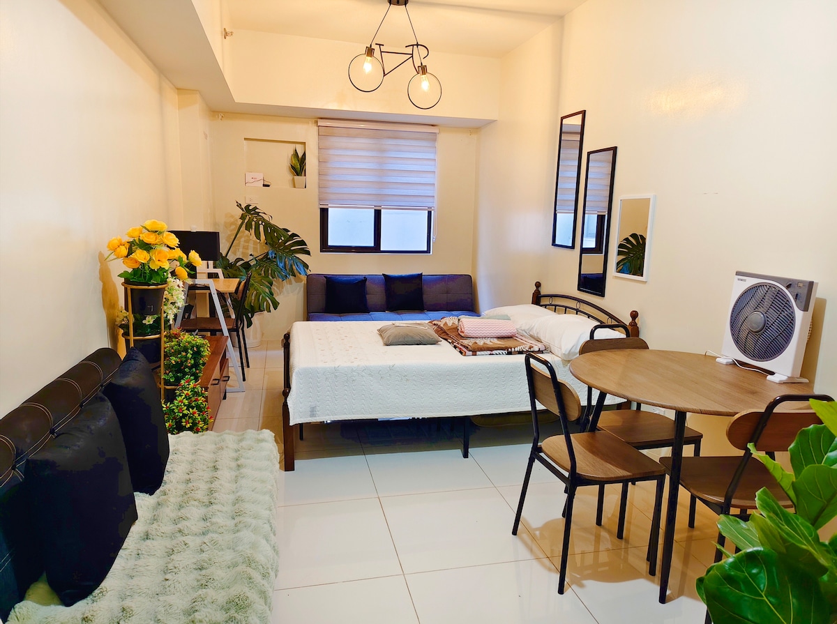 You wouldn’t want to miss this unique, charming, one-of-a-kind place located in a quiet, tranquil & quaint corner of the city… yet close enough to interesting places usually loved by tourists and locals alike. You’ll stay in a 33.2sqm studio condo unit with double & single-sized Murphy beds, stunning sunset & amazing cityscape balcony views. You’ll enjoy a welcoming, air conditioned place equipped with wifi suited for reviewees & WFH, study/work desk, own toilet, hot/cold shower, kitchen & more.